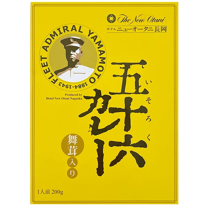 《実食レポート》旧海軍連合艦隊司令長官の山本五十六元帥の出身地が越後・長岡だったことから、「五十六カレー」と名づけられた本品。旧海軍のカレーの味をベースに、ホテルニューオータニ長岡のシェフがアレンジしました。早速ルーを一口食べてみると……結構スパイシー! 薄茶色の昔風カレー的なヴィジュアルからは想像つかないくらい、パンチのある辛さですね。でも、ただ辛いだけでなく、トマトやたまねぎをじっくり煮込んで引き出した酸味とコク、そしてほのかな甘みが、辛さとともに訪れ、舌の上で見事に調和していきます。レトルトカレーの具材としては珍しい舞茸はとても大きく、シャキシャキとした食感はもちろん、その風味がルーにさらに奥深い味わいを加えてくれていて、とても上品な仕上がりです。冷静に世界情勢を見つめ、最後まで日米開戦に反対していた名将・山本五十六の名にふさわしく、洗練された美味しさを感じさせるカレーです。
