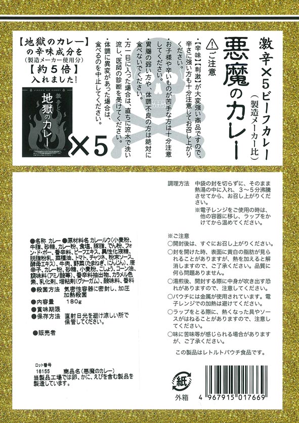 食べたアナタを地獄に落とす激辛×5ビーフカレーです。