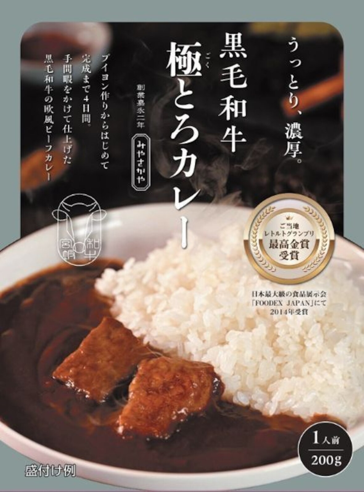 山形産黒毛和牛のすね肉を、4日間かけて煮出したフォンド・ボーで、とろりと箸でちぎれるほど柔らかく煮込み、13種類のスパイスを加えた自家製ルーとデミグラスソース、地元産のりんごチャツネで仕上げました。200gのカレーに約50gものお肉が入ったこだわりのビーフカレーです。