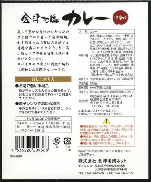 《実食レポート》かつて平家の落人がペット用に持ち込んだのが、その始まりと言われる会津地鶏。今でも他の種と交雑することなく、固有の種を守っているため、流通量もそれほど多くなく、なかなかお目にかかる機会は少ないようです。早速、その会津地鶏から食べてみると、ギュッと詰まったような密度の濃い肉質。歯ごたえがあり、噛むたびにうま味が口の中に広がります。会津の自然の中を駆け回ったことで育まれた、野趣あふれるおいしさです。そしてルーはと言うと、会津地鶏のダシをベースに、メインである地鶏の味を際立たせるような、あっさりとした仕上がりになっています。鶏肉からしみ出たほのかな甘みと、ほどよいスパイシーさがアクセントになり、飽きのこないおいしさです。